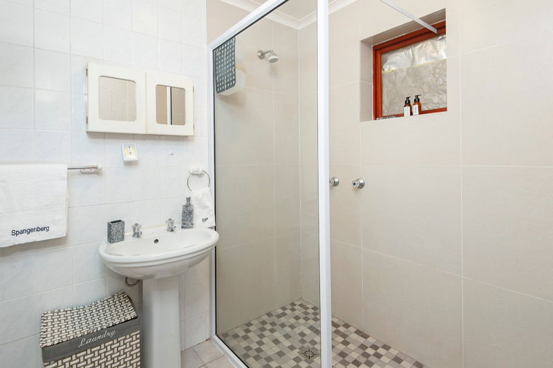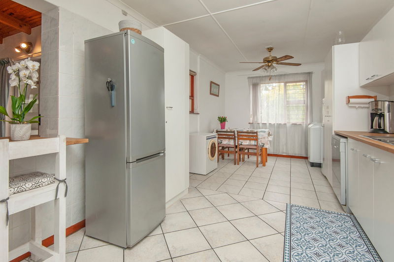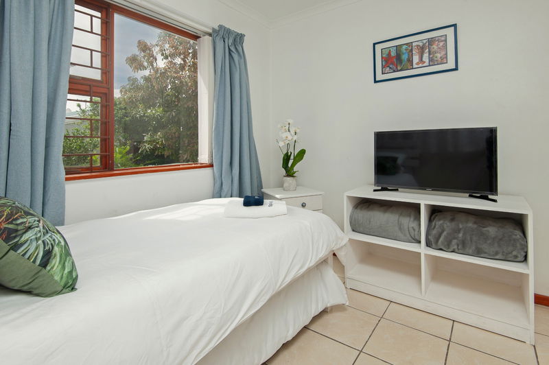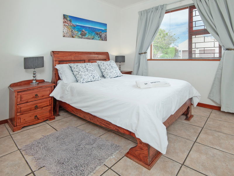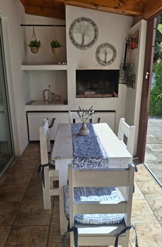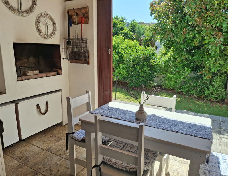 Outside, there is a covered patio with an outdoor dining table and a built-in braai, which is a great place for an evening cocktail while the fire is burning. Guests have secure parking behind a locked gate on the premises.